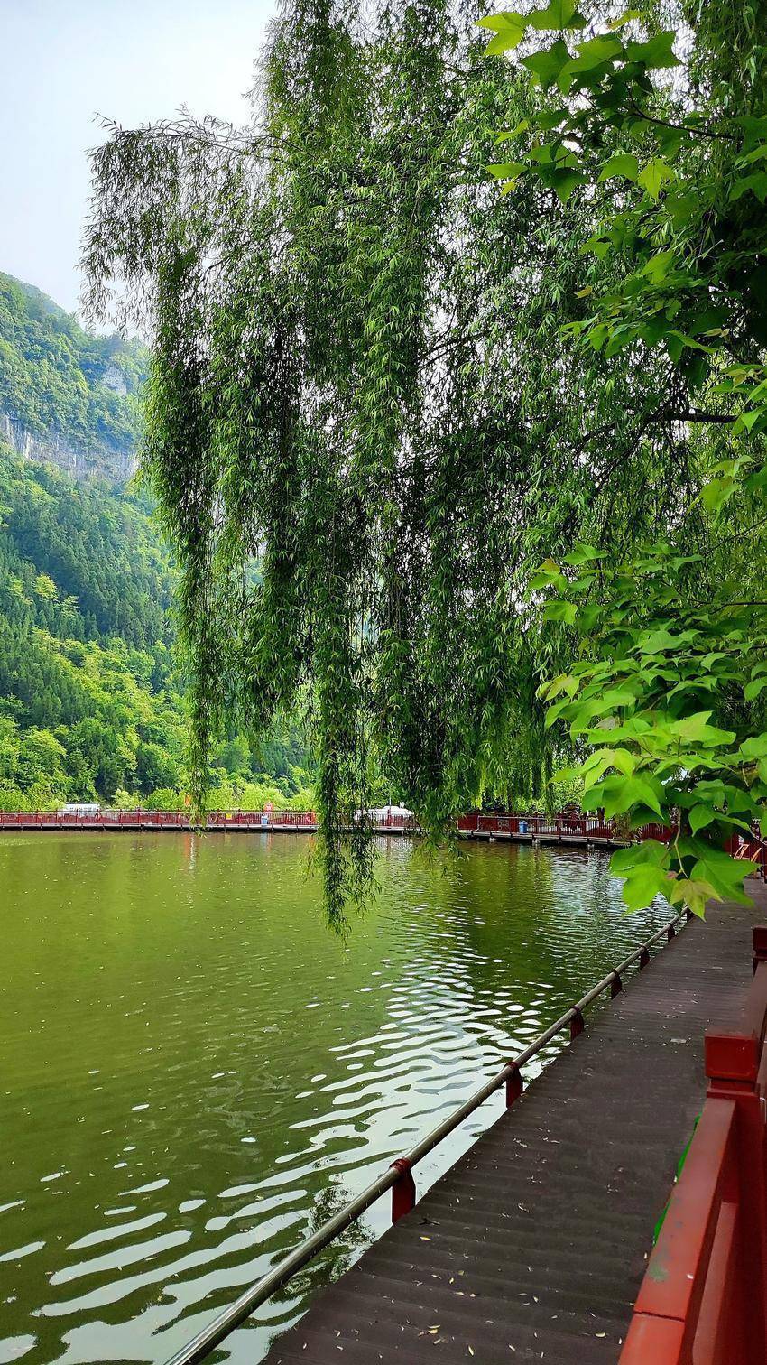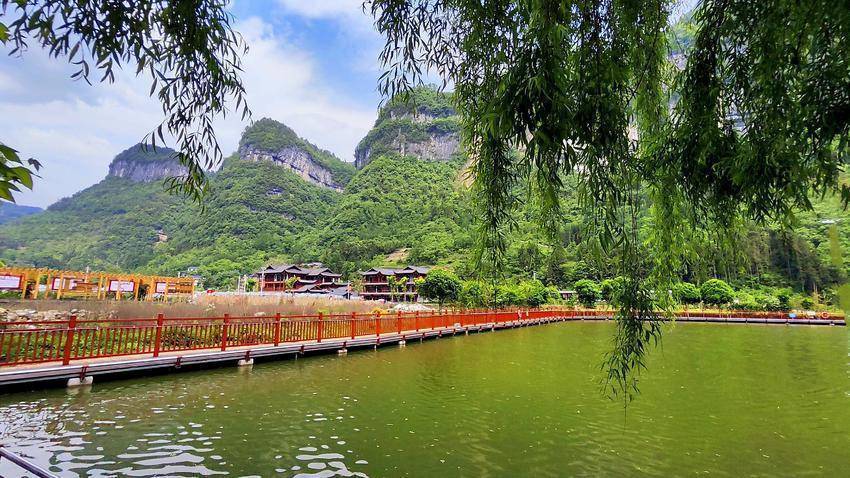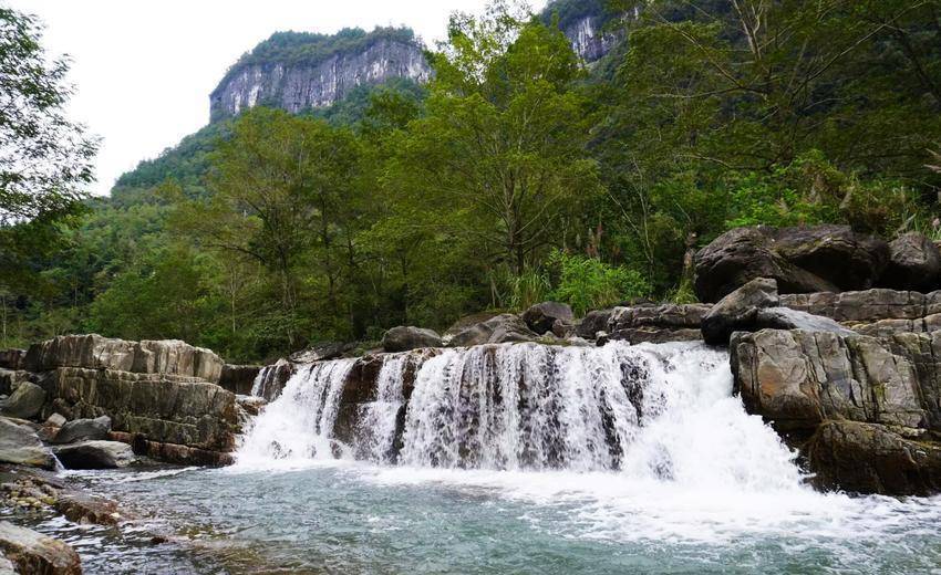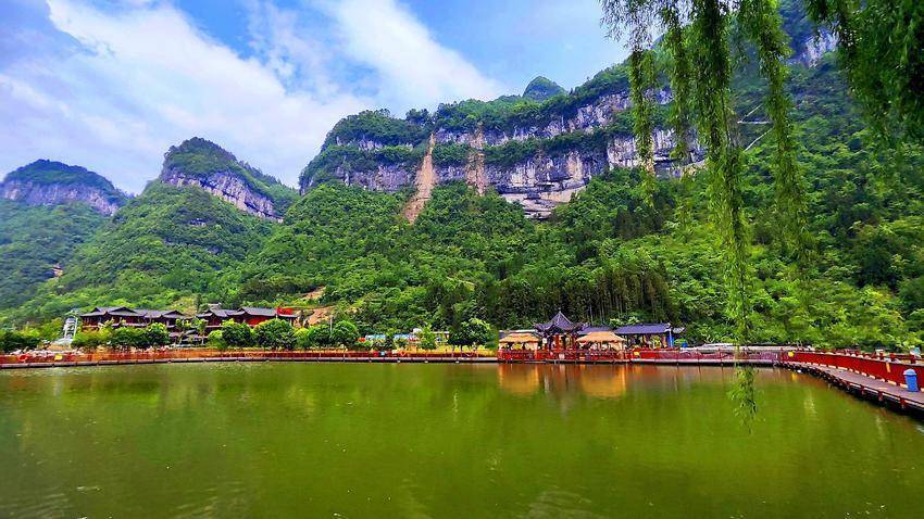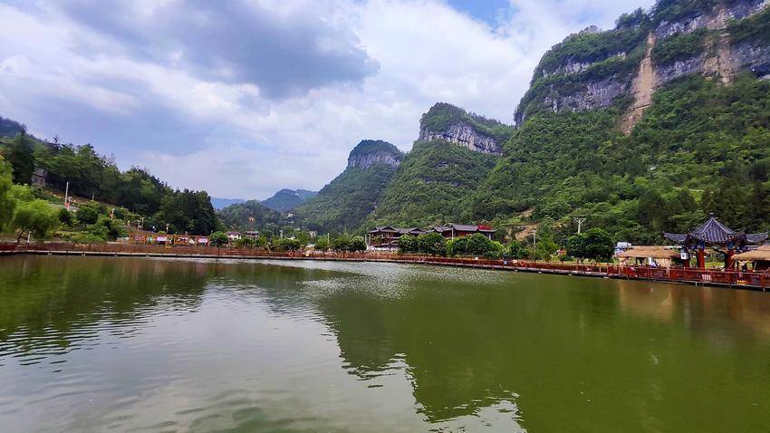 溇水源头在此低吟浅唱,河岸池水如镜,将蓝天白云与嶙峋岩影尽揽怀中,水天相接处,翠峰倒悬,似仙人泼墨的写意画卷。